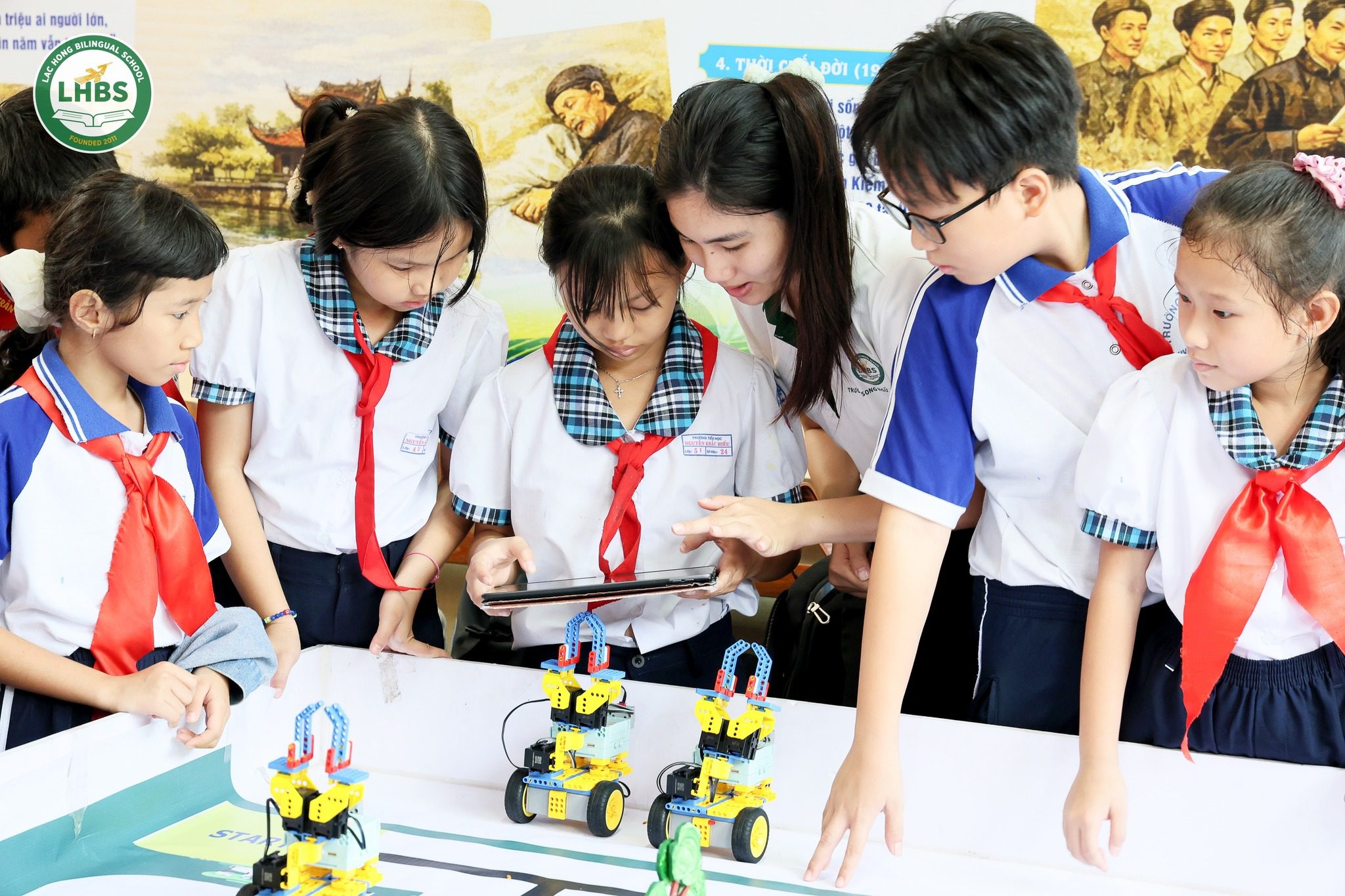 Participating as a partner, Lac Hong Bilingual School brought three exciting experiential zones to the festival: STEM, AI Robotics, and English interaction activities for the students of Nguyen Khac Hieu Primary School.