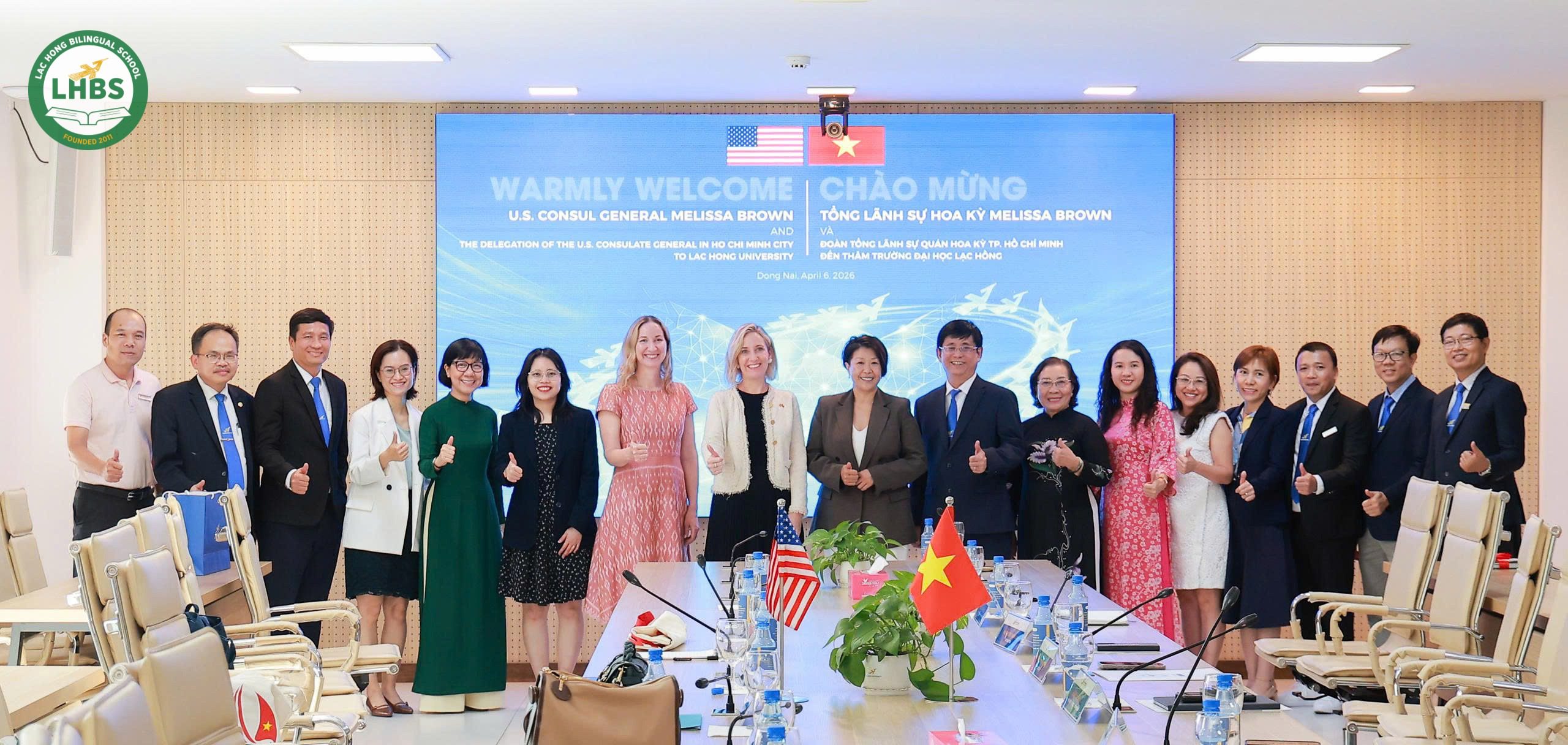 On the afternoon of April 6th, 2026, students from Lac Hong Bilingual School had the valuable opportunity to participate in a special exchange program at Lac Hong University, welcoming a delegation from the U.S. Consulate General in Ho Chi Minh City, led by Consul General Mrs. Melissa Brown, along with representatives from the fields of education and culture.