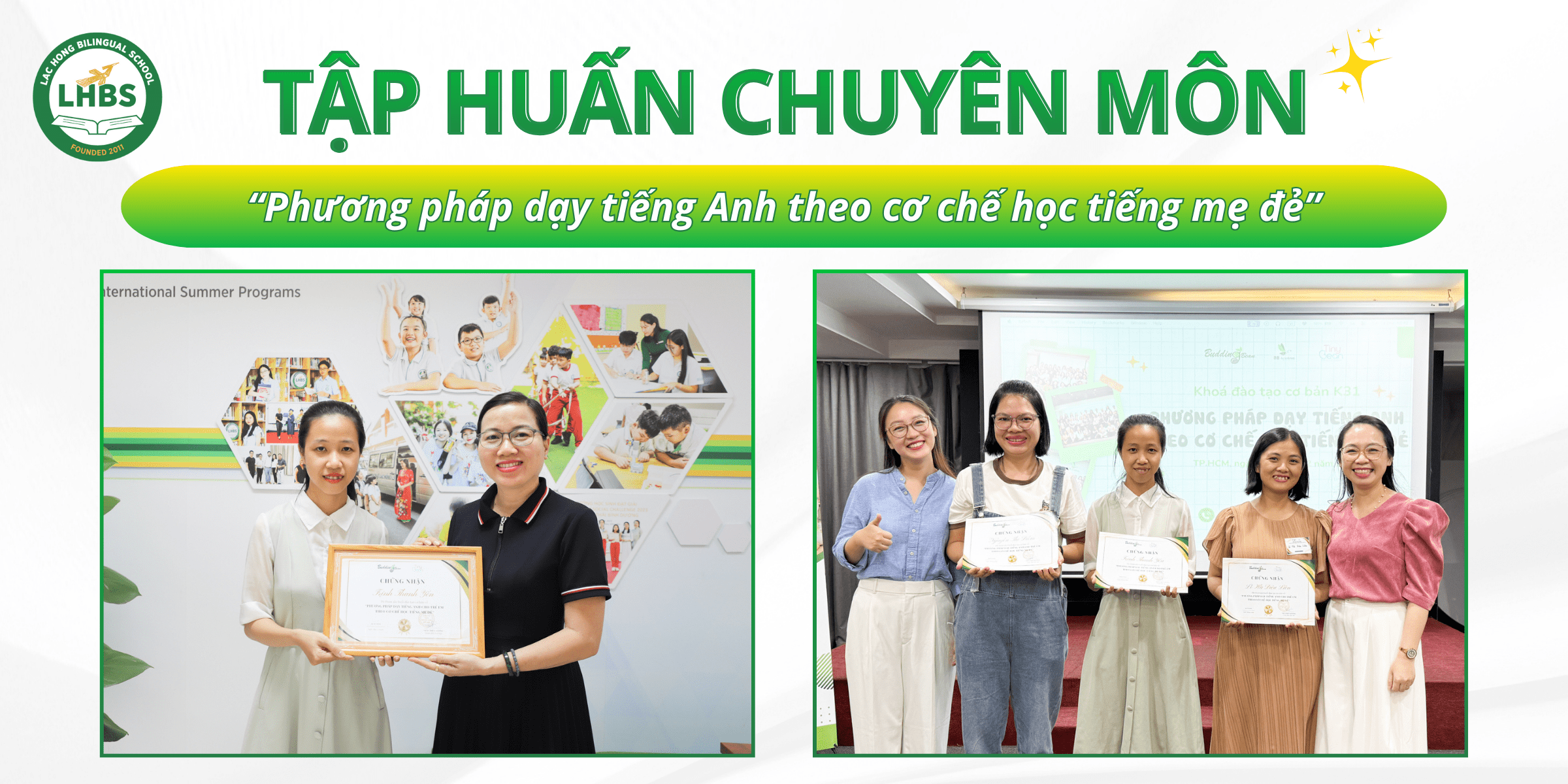 With the aim of helping children learn English in a natural and intuitive way, similar to how they acquire their mother tongue, the English teaching team at Lac Hong Bilingual Kindergarten participated in a professional training workshop entitled “Teaching English Through the First-Language Acquisition Approach.”