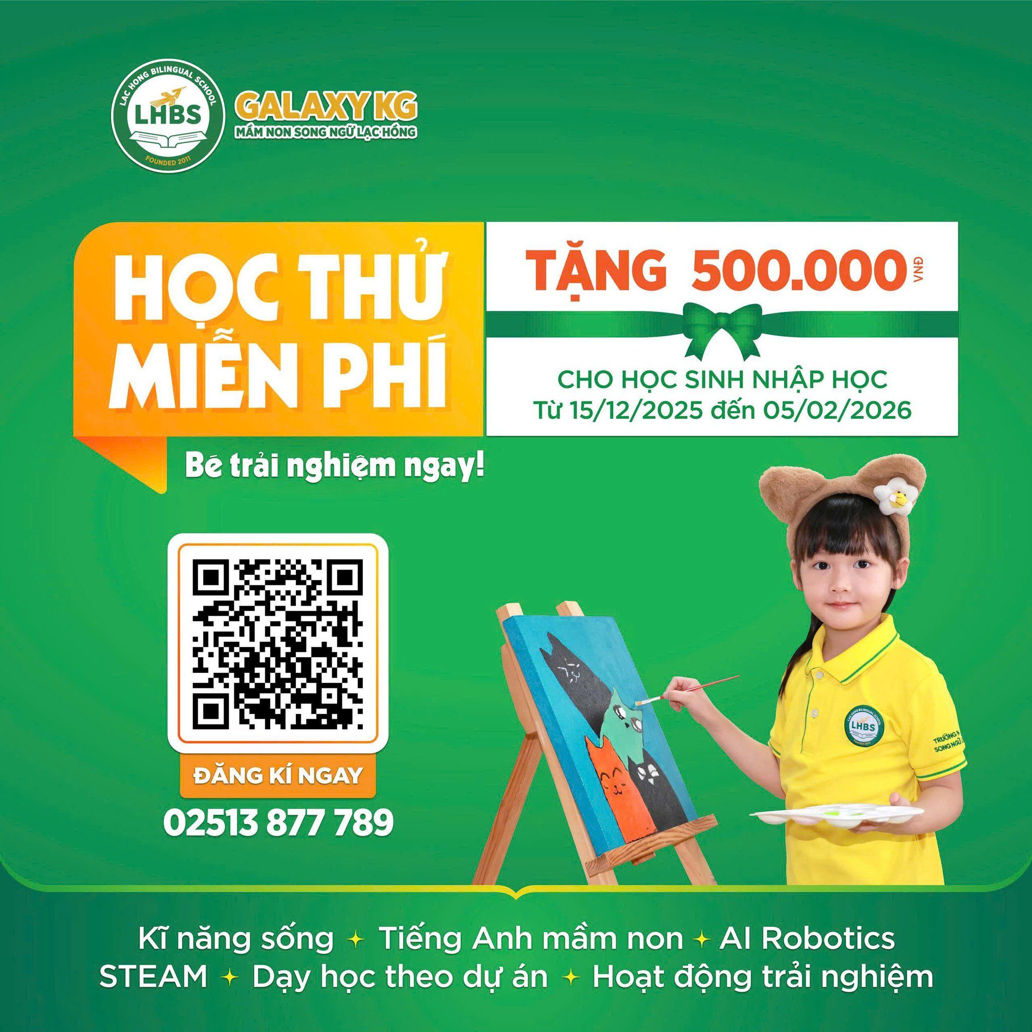 Trường chính thức mở đăng ký 39 suất ưu đãi giảm 100% lệ phí học tập dành cho phụ huynh mong muốn cho bé tiếp cận một môi trường giáo dục sớm chất lượng. Đồng thời, bé sẽ được trải nghiệm 2 ngày học thử miễn phí, giúp phụ huynh quan sát trực tiếp cách bé tương tác, khám phá và phát triển trong các hoạt động lại Trường