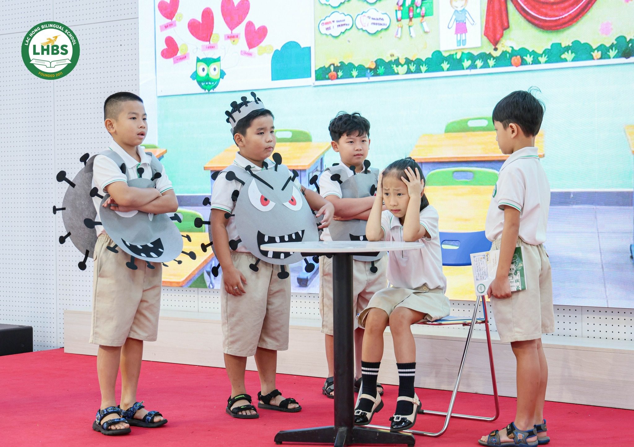 Các bạn nhỏ mạnh dạn thuyết trình trước thầy cô và bạn bè về thông điệp, cách thực hiện và ý nghĩa sản phẩm. Điều đáng quý nhất sau dự án không chỉ là những sản phẩm sáng tạo, mà là sự thay đổi trong nhận thức của các bạn: biết quan tâm đến sức khoẻ của bản thân, biết chia sẻ thói quen tốt với gia đình và bạn bè.